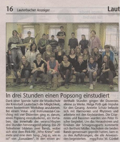 Beim Band Contest zum GWV-Lauf in Fulda am 02.06.2012 haben 3 Bands meiner Schüler teilgenommen. Die Band "Prime Time" mit Sänger Marius Münkel hat gewonnen und 1000,00 € Preigeld erhalten. Auf weiteren Bühnen spielten "Attention unplugged" mit Sängerin Carolin Erb und die Newcomer Band "LOT" um Sänger Leonard Schmidt.